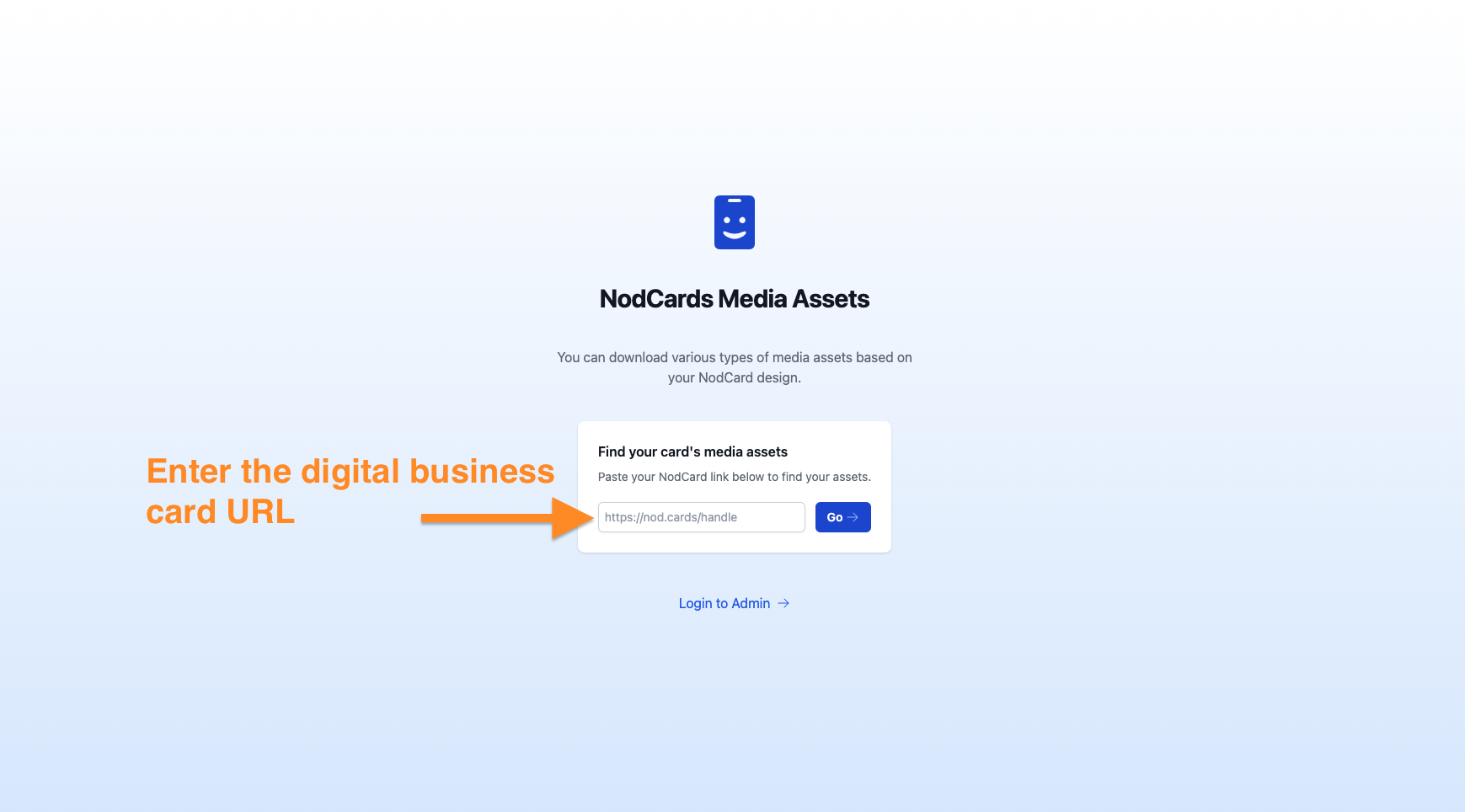 Enter a NodCards digital business card URL or handle (e.g. nod.cards/bobloblaw) and click 'Go'.
