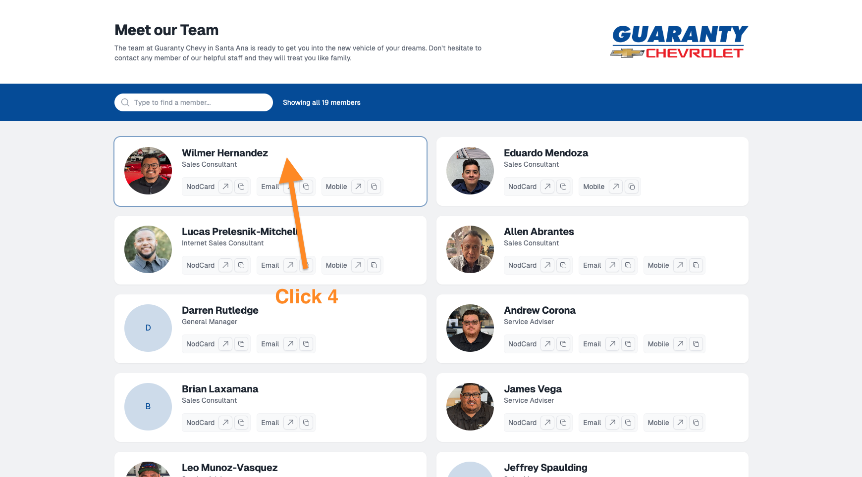 From the Builder, click the NodCards icon, then click "Team Directory"