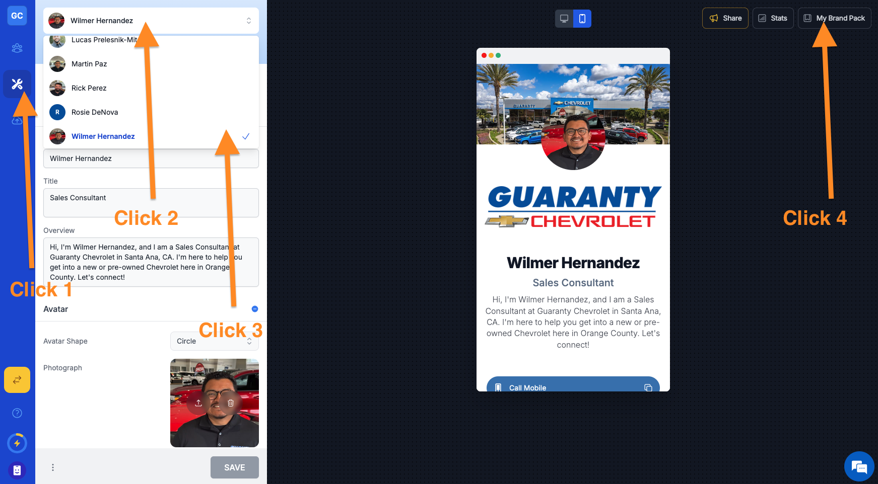Builder and select the employee for whom you want to generate branded assets.