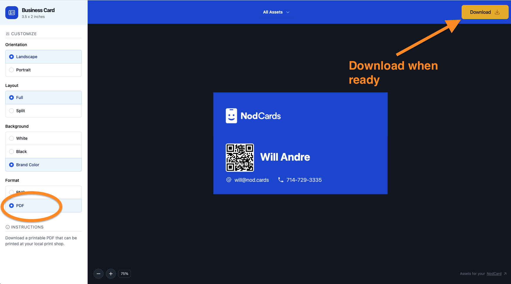 From the Preview, customize your business card by selecting the Orientation, Layout and Background of your choice.